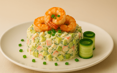 Салат «Нептун» з крабовими паличками та креветками — святковий рецепт