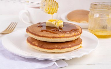 Панкейки чудово поєднуються з медом, варенням або згущівкою. А можеш прикрасити їх свіжими ягодами — смакуватиме неймовірно!
