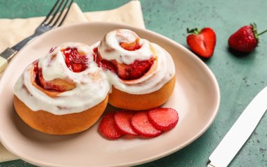Солодкі, м’які, ароматні — ці полуничні синабони з ягідною начинкою та кремовим прошарком з вершкового сиру — справжній десертний хіт. Вони поєднують у собі пишне дріжджове тісто, соковиту начинку і ніжну, злегка кислувату глазур. Синабони з полуницею та крем-сиром за рецептом фудблогерки Дарії Дорошкевич одночасно нагадують булочку, рулет і тістечко, а ще їх хочеться їсти теплими, прямо з дека.