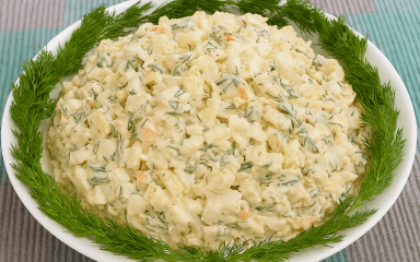 Рецепт салату «Домашній» з хека, яєць і петрушки
