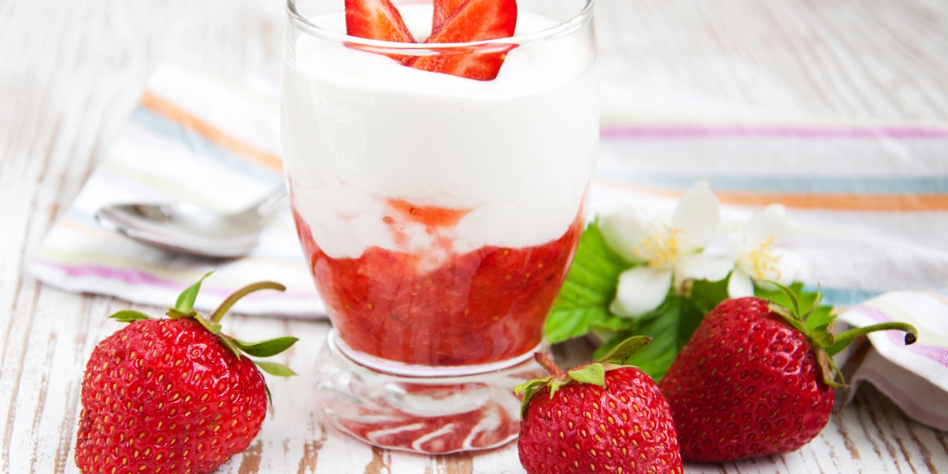 - Використовуй натуральний йогурт без додатків, щоб не перебивати смак полуниці та морозива. Грецький йогурт підійде, він надасть десерту без випікання густішу і кремовішу текстуру.