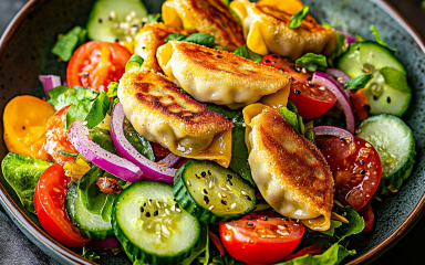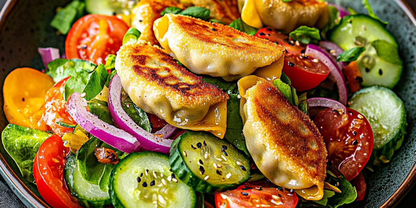 Азійський салат з гьодзе — це незвична ідея для страви від шефині Льолі Ланди. Тут є і японські вареники з м’ясом, і хрусткі овочі, і пряний імбир. Гарний варіант для ситної вечері, коли хочеться здивувати близьких або гостей.
