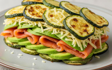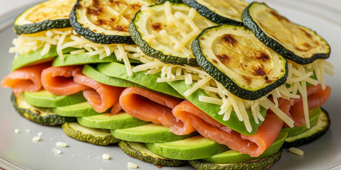 Кабачковий бутерброд з лососем — це швидкий, цікавий і сезонний варіант сніданку. Замість хліба — запечені кабачкові слайси з сиром, а для начинки візьмемо вершковий сир, авокадо і шматочки слабосолоного лосося.