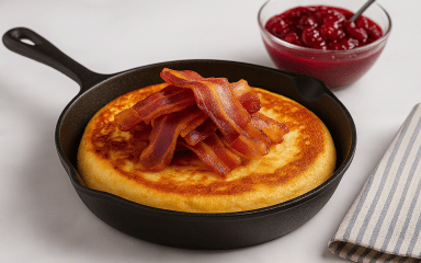 Цей яєчний пиріг по-шведськи — чудовий приклад простого, але ситного сніданку або легкої вечері на основі яєць. Він швидко готується, нагадує пишний омлет і легко замінює звичну яєчню. Бекон додасть насичений смак, а трохи зелені — свіжість. За традицією подається страва з журавлиновим соусом.