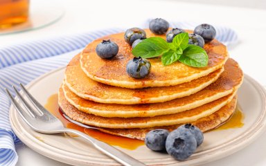 Ці пишні панкейки смажаться без зайвого жиру, підходять і дітям, і дорослим, чудово поєднуються з ягодами, бананами, медом або сметаною.