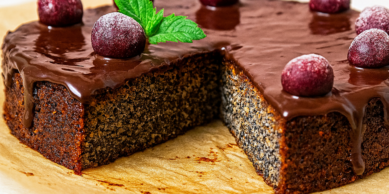 Маковий пиріг без борошна готується на основі маку, горіхів, какао та збитих яєць. Ця маса випікається, потім просочується вишневим сиропом і покривається розтопленим шоколадом. Такий маковий пиріг надзвичайно смачний і святковий на вигляд. Секрет його успіху — класична українська комбінація макового, горіхового та вишневого смаків.