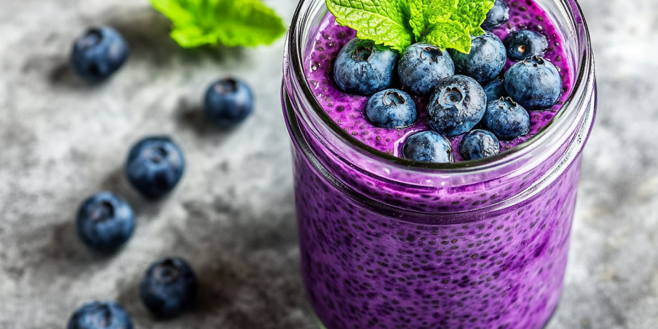 Цей чіа-пудинг — не просто смачний, а ще й багатий на клітковину та вітаміни. Чорниця — одна з найкорисніших ягід, яка підтримує зір, імунітет та покращує роботу мозку.