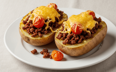 Картопля з фаршем і томатами — ідеальний рецепт для мангала, духовки чи аерогрилю. Готувати цю страву дуже просто: начиняєш картопляні човники фаршем, поливаєш томатним соусом і запікаєш. Отримуєш гарячу закуску або повноцінну вечерю, яку зручно їсти руками.