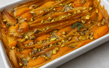 Це чудовий і швидкий рецепт, адже випічка з філо готується не довше 30 хвилин. Наш пиріг з абрикосами з тіста філо розкриється неповторним смаком завдяки невеликій кількості сиру з пліснявою.