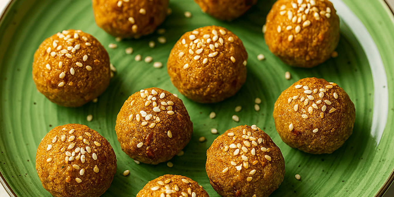 Висип кунжут на пласку тарілку. Обваляй тістечка і відправ у холодильник на 30-40 хвилин.