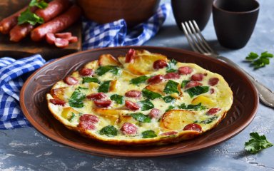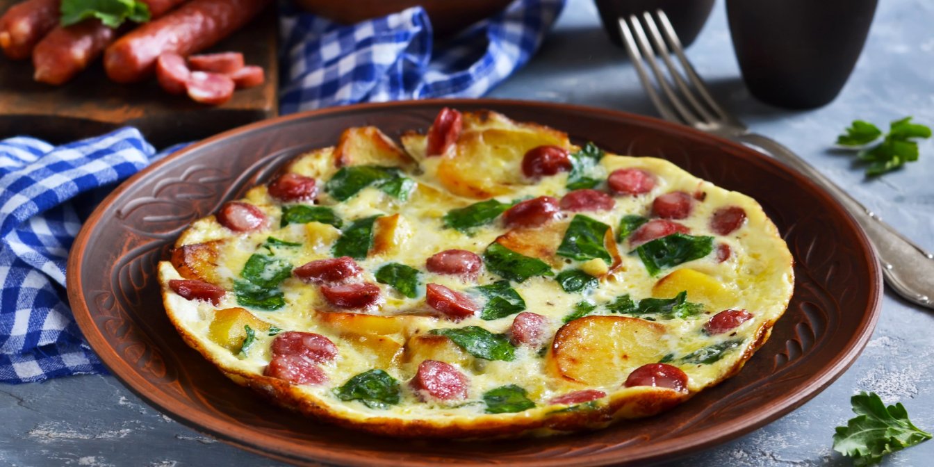 Шукаєш рецепт для ситного сніданку на щодень? Ось він — омлет «Селянський сніданок» з картоплею і сосисками для тих, хто любить добре поїсти зранку. А якщо маєш заздалегідь зварену картоплю — страва буде готова за 20 хвилин.