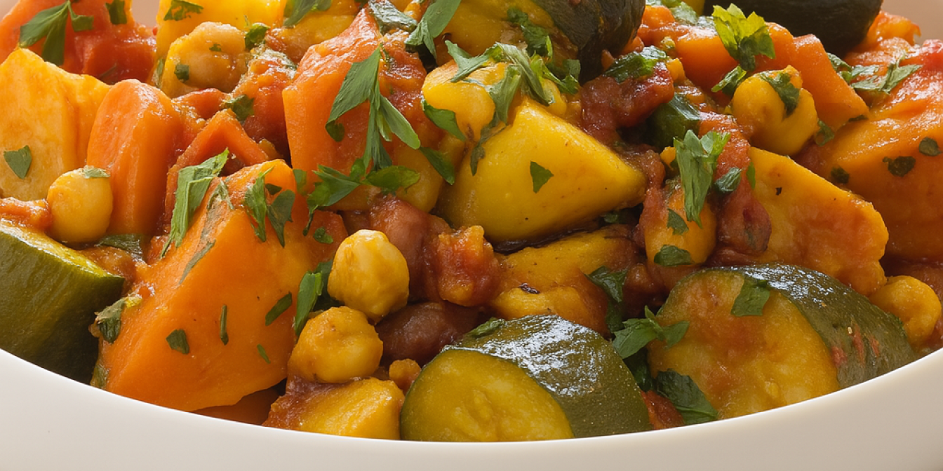 Овочеве рагу — одна з найуніверсальніших страв: ситна, корисна й напрочуд ароматна. А у марокканському стилі вона перетворюється на справжнє свято спецій і кольорів. Тут і класична картопля, і солодкий батат, нут, кабачки, соковиті томати, а ще прянощі, що створюють незабутній східний настрій. Зберігай новинку серед наших рецептів рагу, яку захочеться повторити не раз.