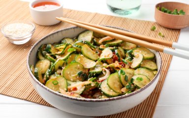Огірки кімчі за 10 хвилин — ферментована гостра закуска, яка походить із Кореї, але прижилася і в нашій кухні. Вона поєднує хрумкі огірки з ароматами часнику, чилі та зеленої цибулі. Такий варіант огірків по-корейськи урізноманітнює сезонне меню і має короткий час приготування.
