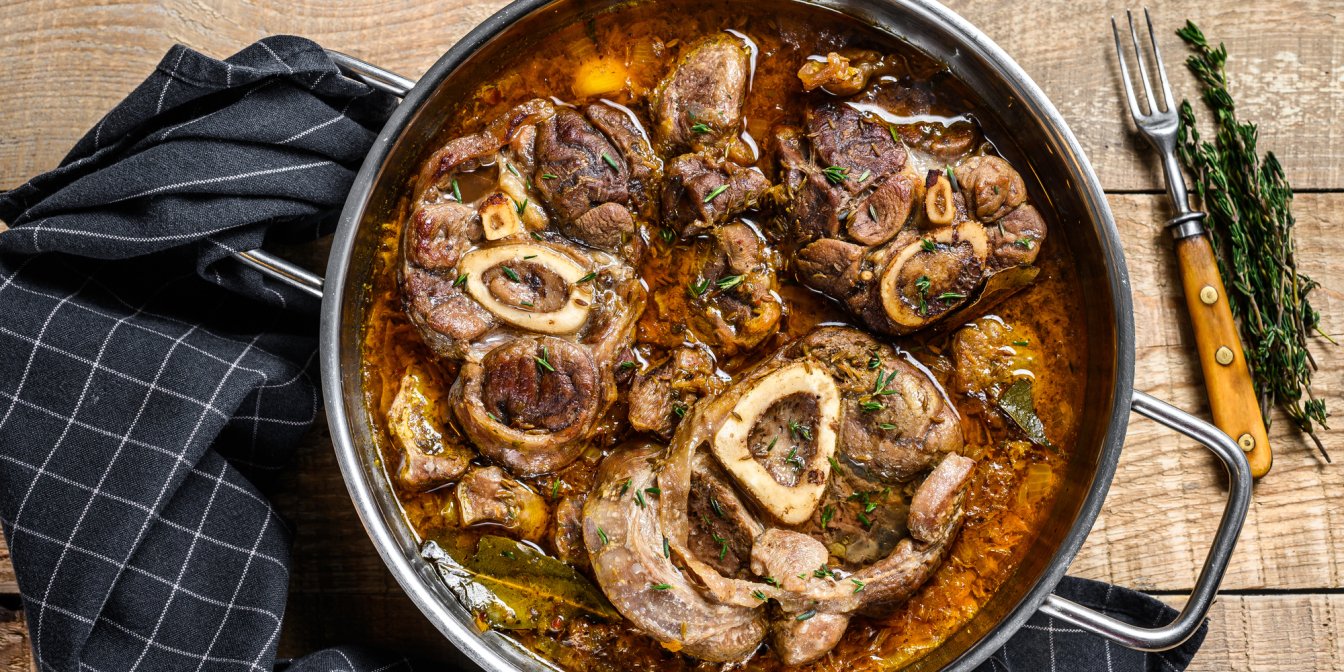 Назва походить від osso buco, що буквально означає «порожня кістка». Така кістка в страві дійсно є — на ній кріпиться м’ясо з телячої гомілки. Найвідоміша версія — особуко по-міланськи. М’ясо спочатку обсмажують, а потім тушкують у білому вині. Подають традиційно із соусом гремолата.