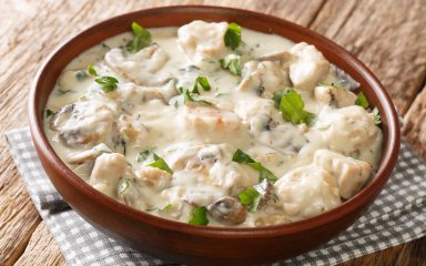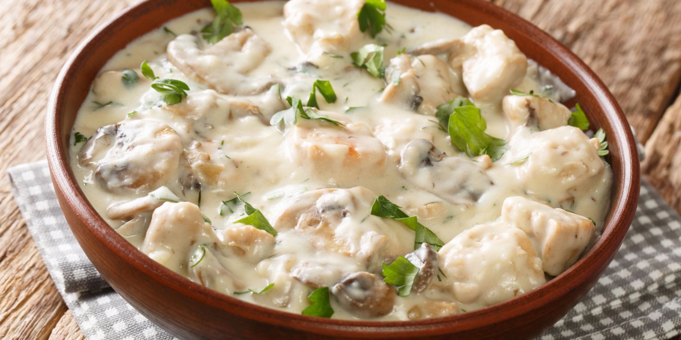 Куряче фрикасе — це традиційне французьке рагу, приготовлене з обсмажених шматочків птиці, тушкованих у вершковому соусі.