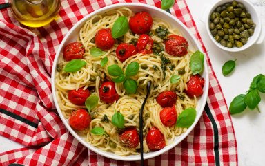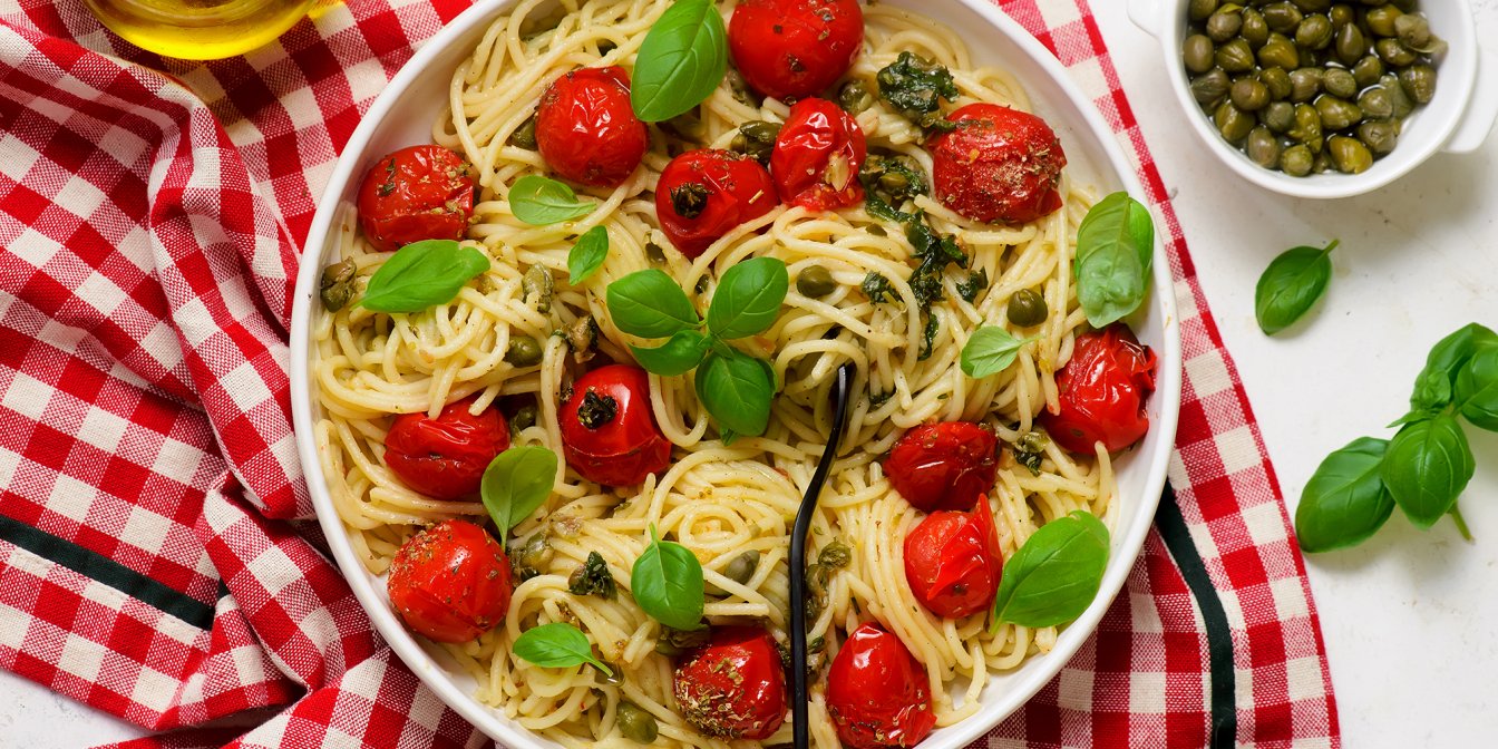 Спагеті з помідорами чері — це базова страва з акцентом на натуральний смак сезонних овочів. Запечені чері з оливковою олією, спеціями й часником створюють соус, для якого не потрібно ні вершків, ні сиру. Такий принцип готування характерний для багатьох простих страв середземноморської кухні, де головну роль відіграють якісні інгредієнти.