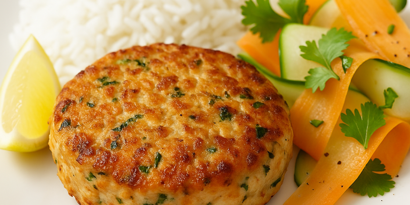 Бургери з лососем та імбирем — це альтернатива м’ясним варіантам, в основі якої лежить, багата на омега-3 жирні кислоти риба. У рецепті поєднуються паста карі, імбир і свіжа кінза, завдяки чому страва має яскравий смак і аромат. Готується вона без булок — подається з овочевим салатом, що робить її легшою для засвоєння.