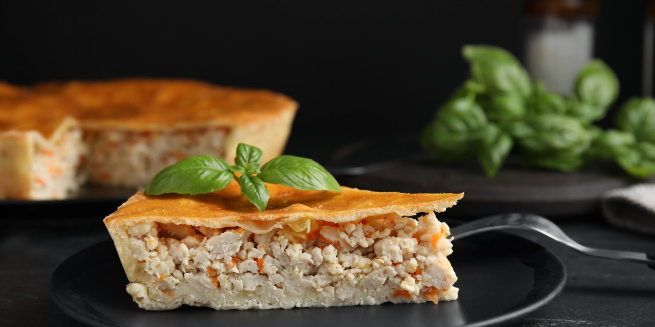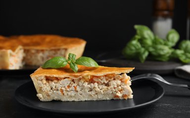 Курячий пиріг на основі тіста філо — це страва з тонким тістом, яке використовується замість традиційного пісочного або листкового тіста, що зменшує калорійність та робить пиріг менш важким. Куряча начинка доповнена овочами, що додає вітамінів і мінералів.