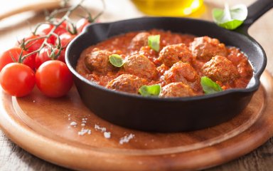 Переклади тефтелі у сковороду з соусом, накрий кришкою та готуй на слабкому вогні ще близько 10 хв. Подавай з макаронами або картопляним пюре.
