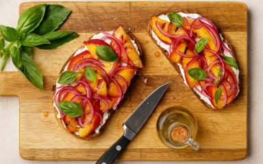 Тост з нектаринами на грилі — це корисний бутерброд для літнього меню. Він поєднує солодкий смак фруктів і меду з пікантною маринованою червоною цибулею. Готується грильований тост за кілька хвилин і добре пасує до легкого обіду або закуски.