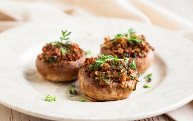 Печериці у фарші — це страва, де ніжні гриби поєднуються з соковитим фаршем та ароматними спеціями. Для більш насиченого смаку всередину кладеться сир, що додасть вершкових ноток. Такий варіант фаршированих печериць підходить і для святкового столу, і як повсякденна смачна і поживна страва.
