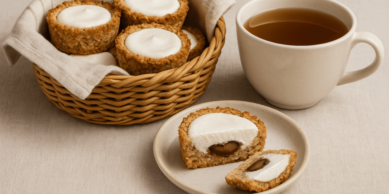 Вівсяно-арахісовий кошик з кисломолочним сиром — десерт із шоколадною серединкою