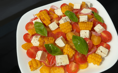 Літній салат із кукурудзою — це легка та освіжаюча страва, яку можна швидко приготувати для обіду чи вечері. У цьому салаті з літніх овочів використовуються молоді качани кукурудзи, що додає натуральну солодкість та текстуру. Такий літній салат підходить для тих, хто цінує прості та корисні страви.