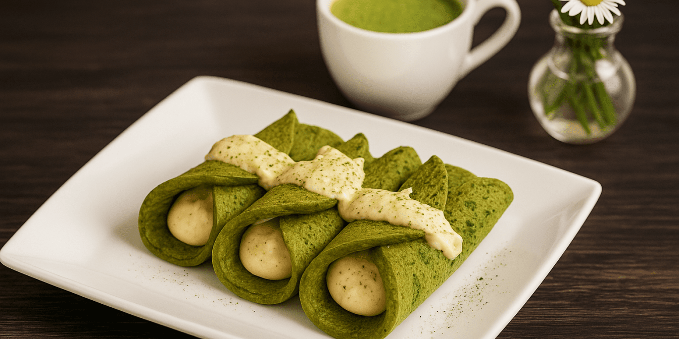 Корисні млинці з лимонним кремом — це версія класичних млинців, у якій тісто готується на вівсяному борошні з додаванням матча, а начинка — з горіхів кеш’ю та лимонного соку. Завдяки цьому десерт виходить поживним, але водночас легким.