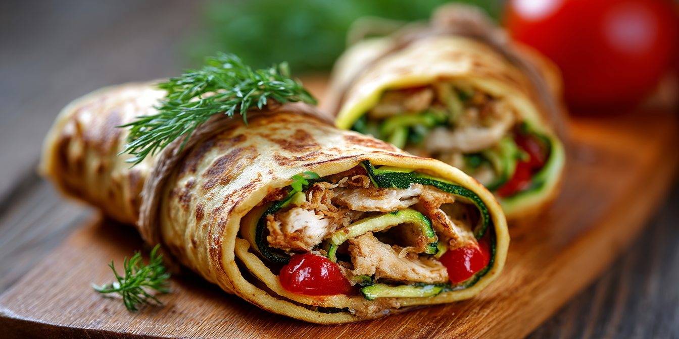 Шаурма з кабачків — це версія популярної вуличної страви, де замість лаваша для загортання домашньої шаурми використовуються тонкі пластини запечених кабачків. Начинка може включати сир, курятину чи овочі, а сама страва зберігає структуру і має ніжний смак.