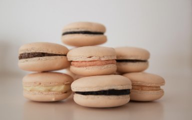 Переклади тісто у кондитерський пакет і відсаджуй невеликі кружечки на деко, вкрите пергаментом. Роби між коржиками невелику відстань, щоби вони не злиплись у духовці. Випікай при 180°C 10–12 хвилин до золотистого кольору.