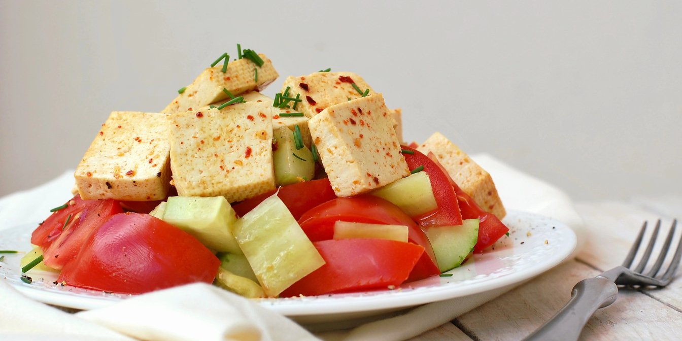 Салат з огірком, тофу й лимонною глазурʼю — це поєднання свіжих овочів із запеченим тофу та кисло-солодкою лимонною заправкою. Завдяки поєднанню білків, клітковини та свіжої зелені страва підходить для щоденного меню.