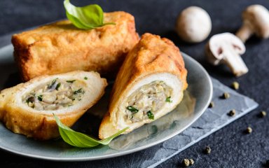- начинка готується з простих продуктів: печериці, цибуля, сир;