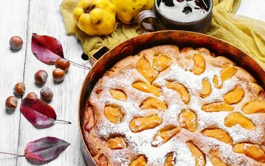 Перевернутий пиріг — це десерт, де фрукти викладаються на дно форми і після випічки перевертаються, утворюючи карамелізовану верхівку. Тісто на сметані робить пиріг ніжним і повітряним, а айва додає специфічну легку кислинку та аромат.