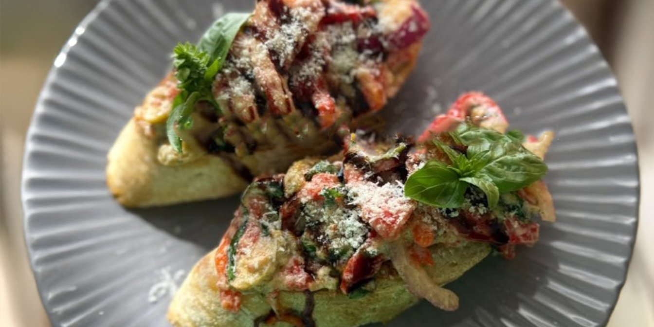 Брускети з запеченими перцями та вʼяленими томатами — яскрава середземноморська закуска