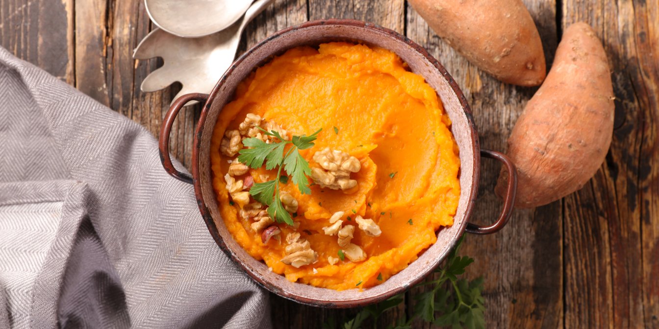 Батат — чудове джерело клітковини. Харчові волокна допомагають організму позбуватися токсинів і покращують метаболізм. Батат надовго дає почуття ситості, а вміст вітамінів групи В та магнію підтримує травлення. А. як відомо, здоровий кишечник — це міцний імунітет.