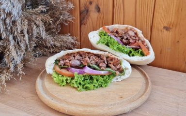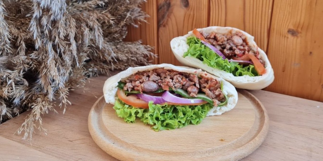 Близькосхідний хліб-кишенька піта готується з дріжджового прісного тіста. У домашніх умовах її треба випікати на максимальній температурі. Смачно начиняти традиційну піту м’ясом і овочами. Наша читачка Hanna пропонує домашній рецепт піти з яловичиною, цілим набором овочів та квасолею.