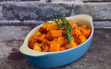 Цей гарнір — один із найкращих і найсмачніших способів отримати побільше користі від гарбуза. М’якоть наріжемо кубиками, додамо спеції, поллємо олією і запечемо. У результаті буде ароматний гарбуз на гарнір або корисна закуска, яку краще подавати теплою.