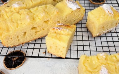 Це ще один доступний у приготуванні лимонних пирогів і кексів. Лимонний пиріг з кремом — по суті, пишний бісквіт, вкритий кремом, який запікається разом з тістом. Крем зробимо з масла, яєць і молока.