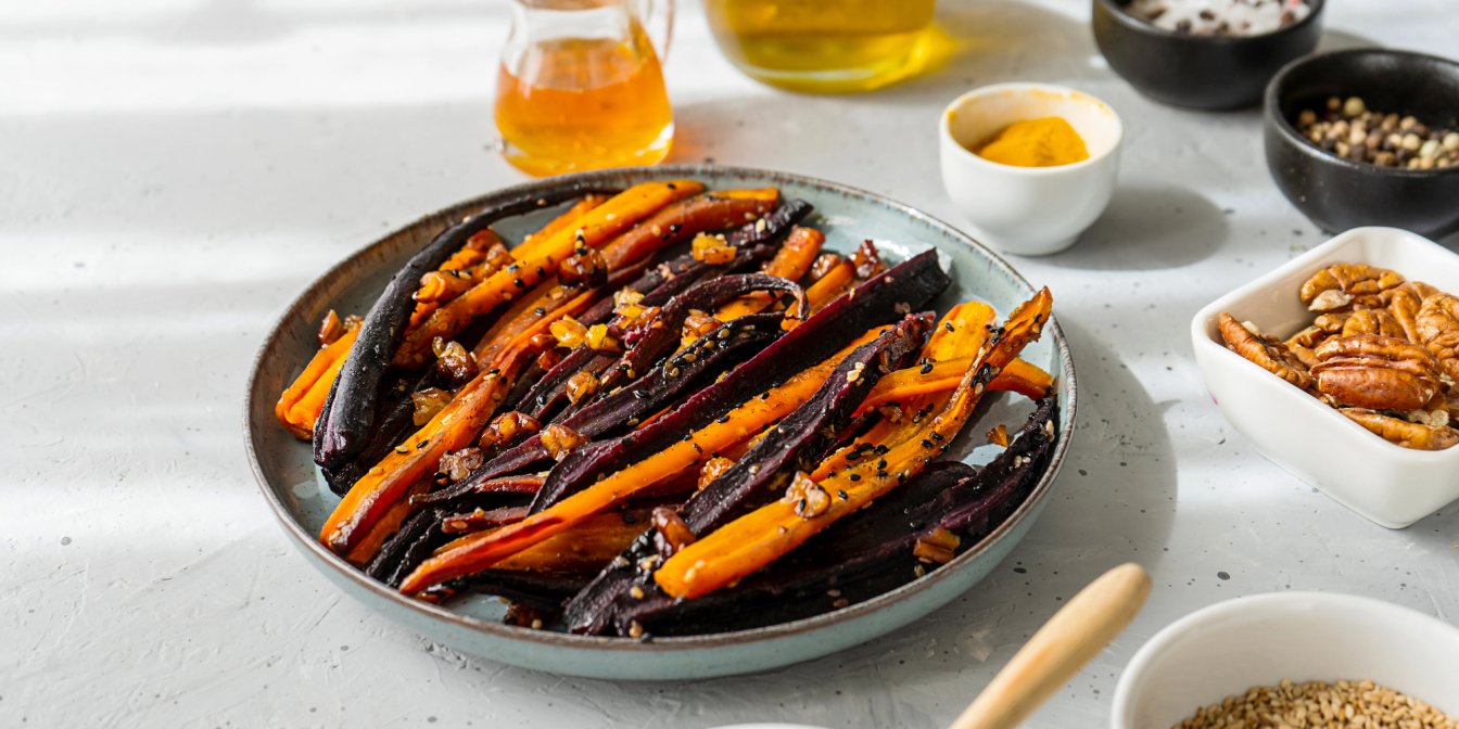 Морква запікається до ніжності, нут — до хрусткості, а глазур на основі кленового сиропу, шавлії та лимонного соку додає страві насиченого смаку. Завдяки багатому складу, така морква в глазурі може бути не лише гарніром, але й повноцінним обідом чи вечерею. Страва підходить для веганського меню, а також вдало поєднується з кіноа чи булгуром.