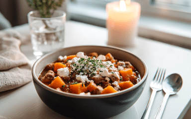 Перед подачею додай кілька скибочок фети — вона злегка розтане і зробить страву ніжнішою.