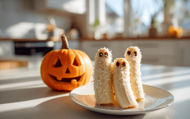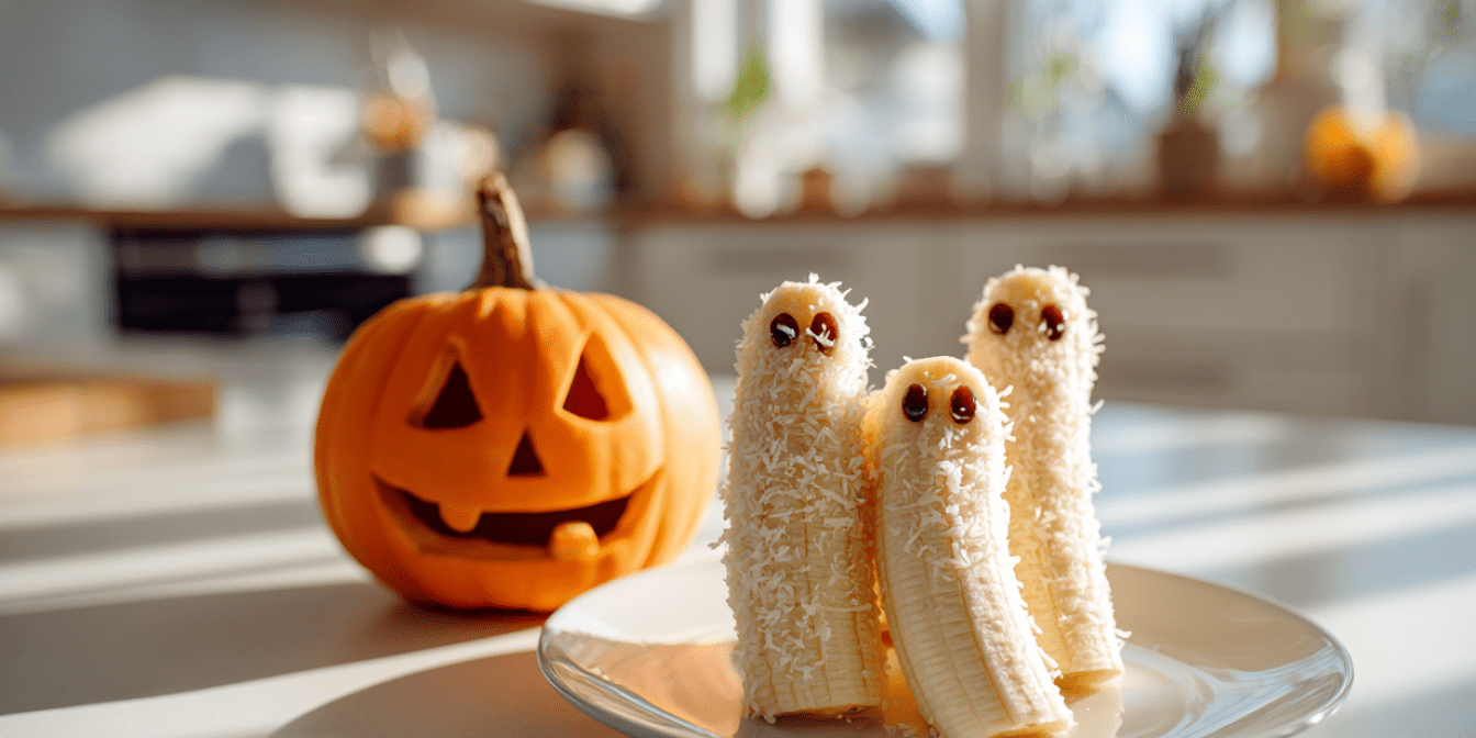 Бананові привиди до Гелловіну з родзинками та кокосом — це швидкий рецепт гелловінського десерту без печива, глазурі й барвників. Очищаємо банан, обвалюємо в кокосовій стружці, додаємо очі-родзинки — і маємо милий дитячий перекус, який з’їдається без умовлянь. Спробуй зробити вдома разом із малюком — це 5 хвилин гри і море корисної смакоти.