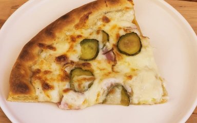 Готуємо піцу з часниковим соусом, беконом та маринованими огірками