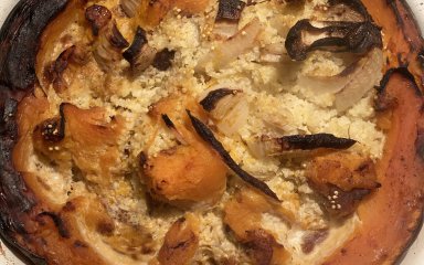 Випікай у духовці при 180°C 60–80 хвилин (до м’якості гарбуза й готовності пшона).
