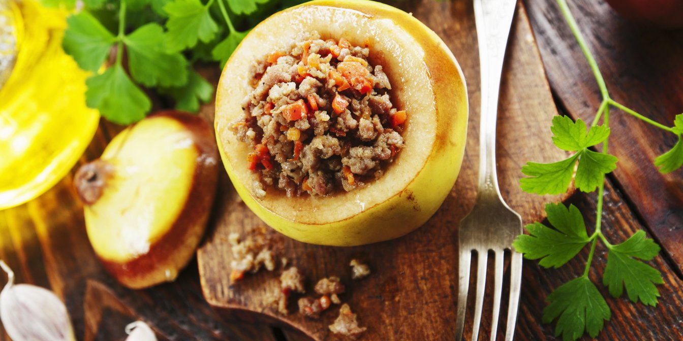 Перед приготуванням треба очистити айву від шкірки та видалити серцевину, а потім тушити, запікати, смажити, варити — будь-який варіант на ваш вибір. У цьому рецепті ми будемо проварювати фрукт, щоб потім зафарширувати начинкою з м’яса, сиру та інших інгредієнтів.