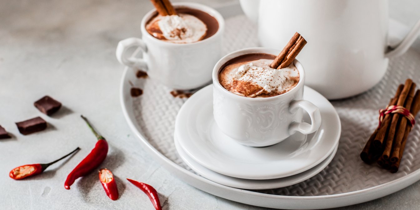 Мексиканський гарячий шоколад відрізняється від звичайного великою кількістю прянощів: перцю чилі, кориці, ванілі.