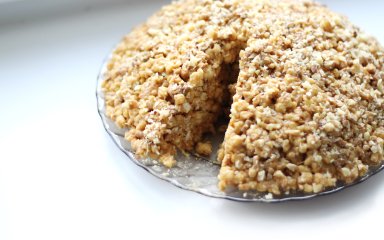 Мак залийте окропом, залиште на 20 хвилин. Волоські горіхи подрібніть.
