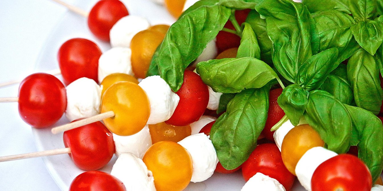 Готуйте трикольоровий салат із моцарелою та смачну запечену картоплю із часничком та розмарином за легкими рецептами.