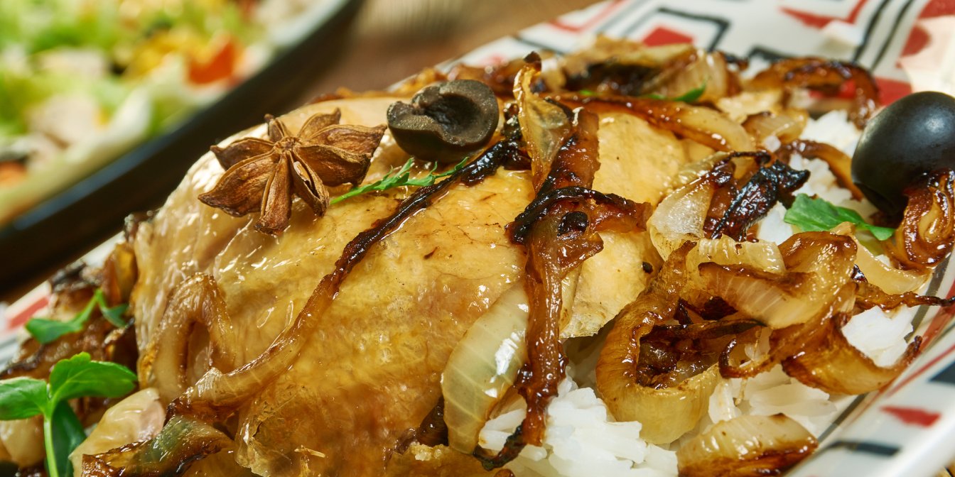 За цим рецептом курячі четвертинки обсмажуються у духовці, а соус з карамелізованої цибулі, гірчиці та лимонного соку чудово з’єднує все разом.