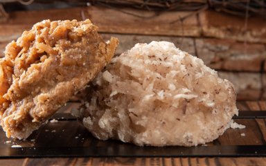 Проколіть кокос, злийте молочко та розбийте. Відділіть від оболонки м’якоть та натріть її на грубій тертці. Зважте.