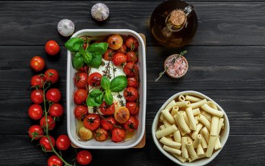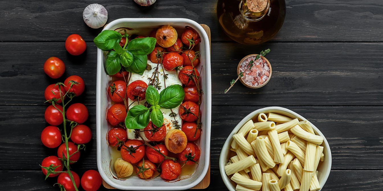 Ні, не можна відмовляти собі у прекрасному! Запіканка зі смачним бруском фети та помідорами чері із додаванням макаронів — не може бути тільки на гарній світлині! Вона просто повинна стояти перед вами!